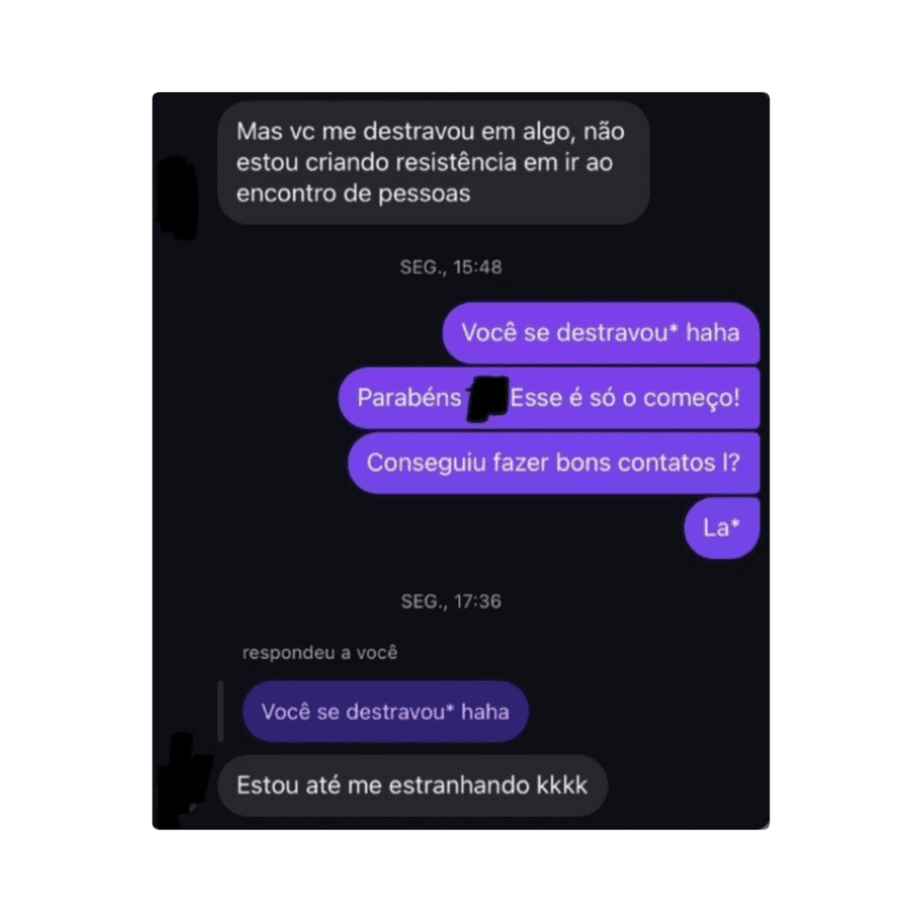 “Graças ao método, eu consegui vir ao Shopping, não estou ansioso, estou surpreso e muito feliz pela evolução!”